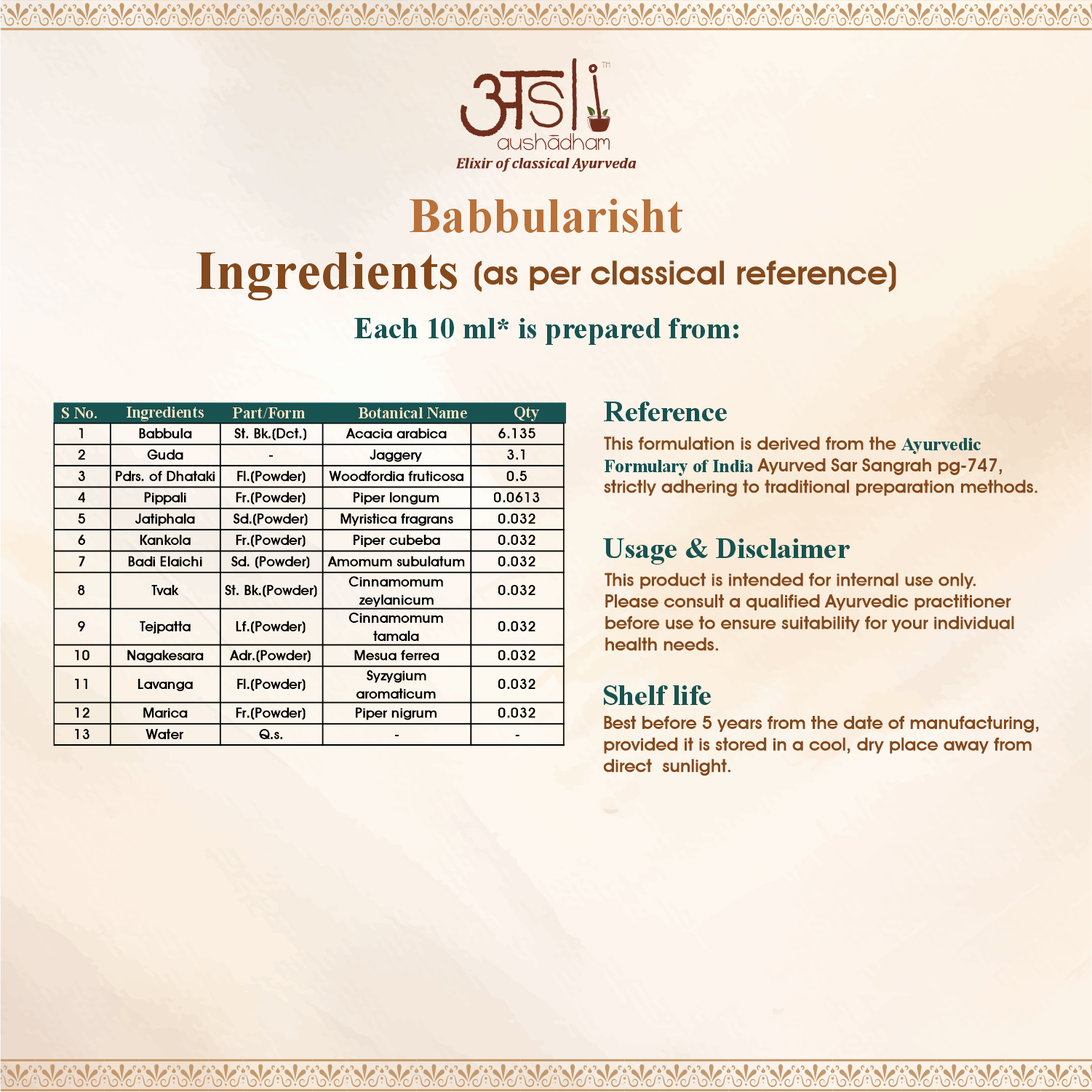 Babbularishta from Asli Aushadham offers multiple health benefits: